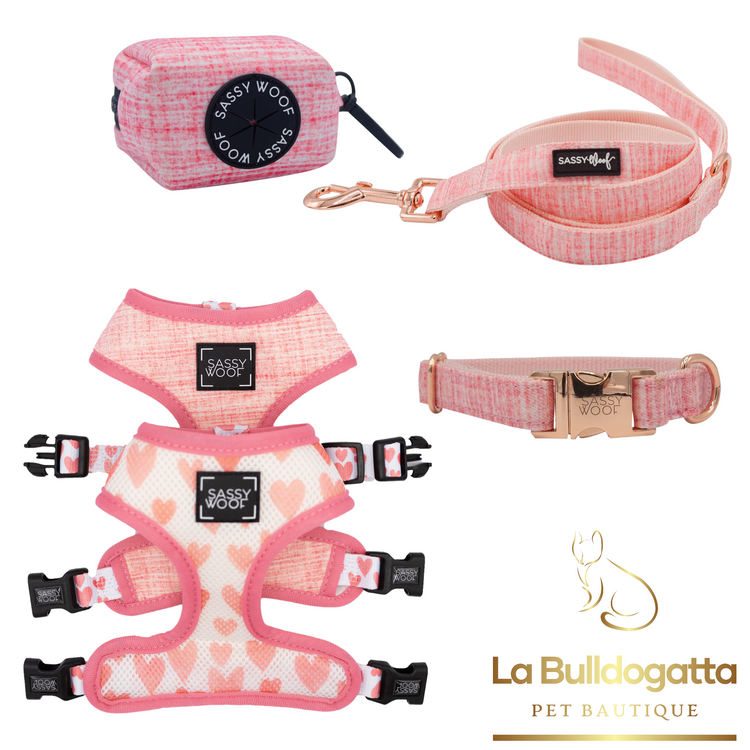 Set DolceRose pettorina/collare + guinzaglio + borsetta portasacchetti