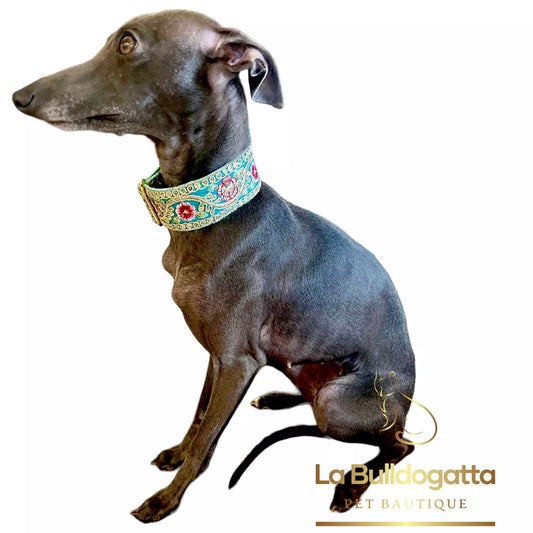 Collare regolabile 40 mm ricamo ramage Tiffany PICCOLO LEVRIERO ITALIANO