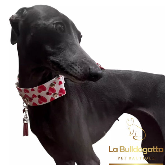 Collare o martingala levriero in biothane stampa UV cuoricini