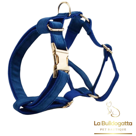 Set Pettorina a H, guinzaglio e fiocco velluto blu royal