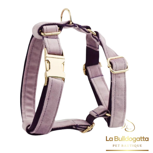 Set Pettorina a H, guinzaglio e fiocco velluto lilla