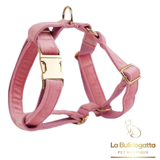Set Pettorina a H, guinzaglio e fiocco velluto rosa