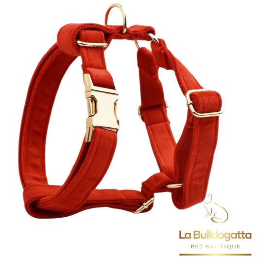 Set Pettorina a H, guinzaglio e fiocco velluto rosso